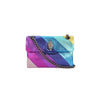 La Borsa Mini Kensington L di Kurt Geiger è un elegante accessorio per la donna moderna e alla moda. Realizzata in pelle bovina granulata lamé con iconico motivo a strisce diagonali arcobaleno, presenta dettagli distintivi come il simbolo di un'aquila con cristalli colorati sulla chiusura frontale.