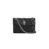 La borsa Mini Kensington X di Kurt Geiger per donna, in elegante tonalità nera, è un'accessorio versatile e di classe. Realizzata con pregiato cuoio d'agnello, è caratterizzata da dettagli cuciti a motivo quilted che uniscono trama e schemi a chevron, arricchita da una chiusura con testa d'aquila in argento anticato, cristalli opachi e perline nere.
