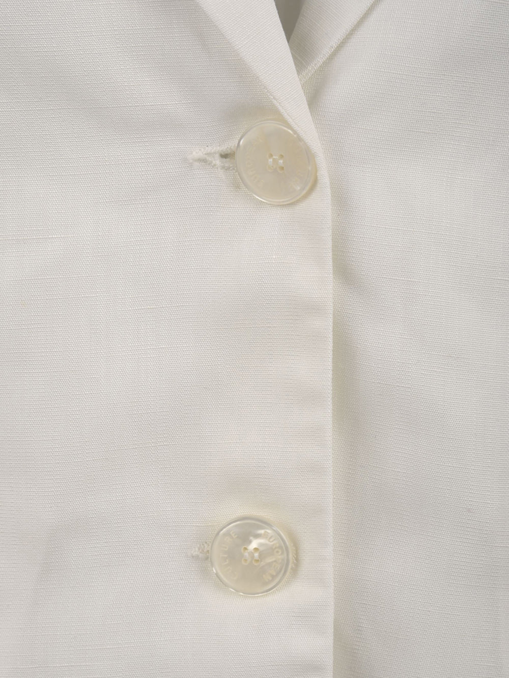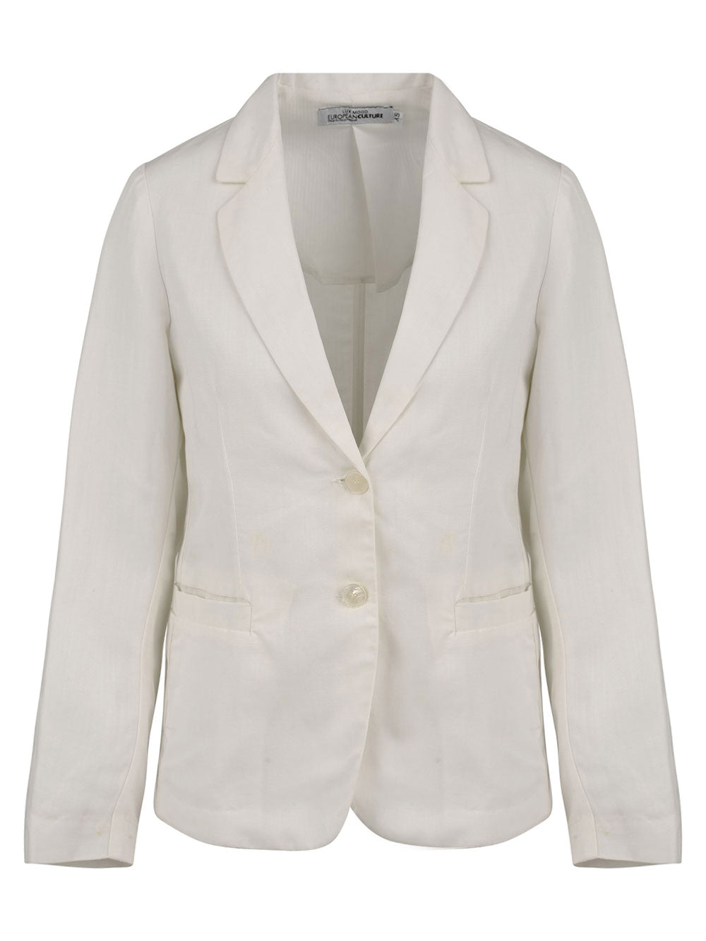 La giacca bianca da donna è un capo di abbigliamento ideale per un look elegante e sofisticato. La sua vestibilità regolare garantisce una comoda vestibilità, mentre la chiusura con due bottoni e i bottoni sulle maniche aggiungono un tocco di stile. Le tasche frontali la rendono anche pratica e funzionale. Un must-have per ogni guardaroba!